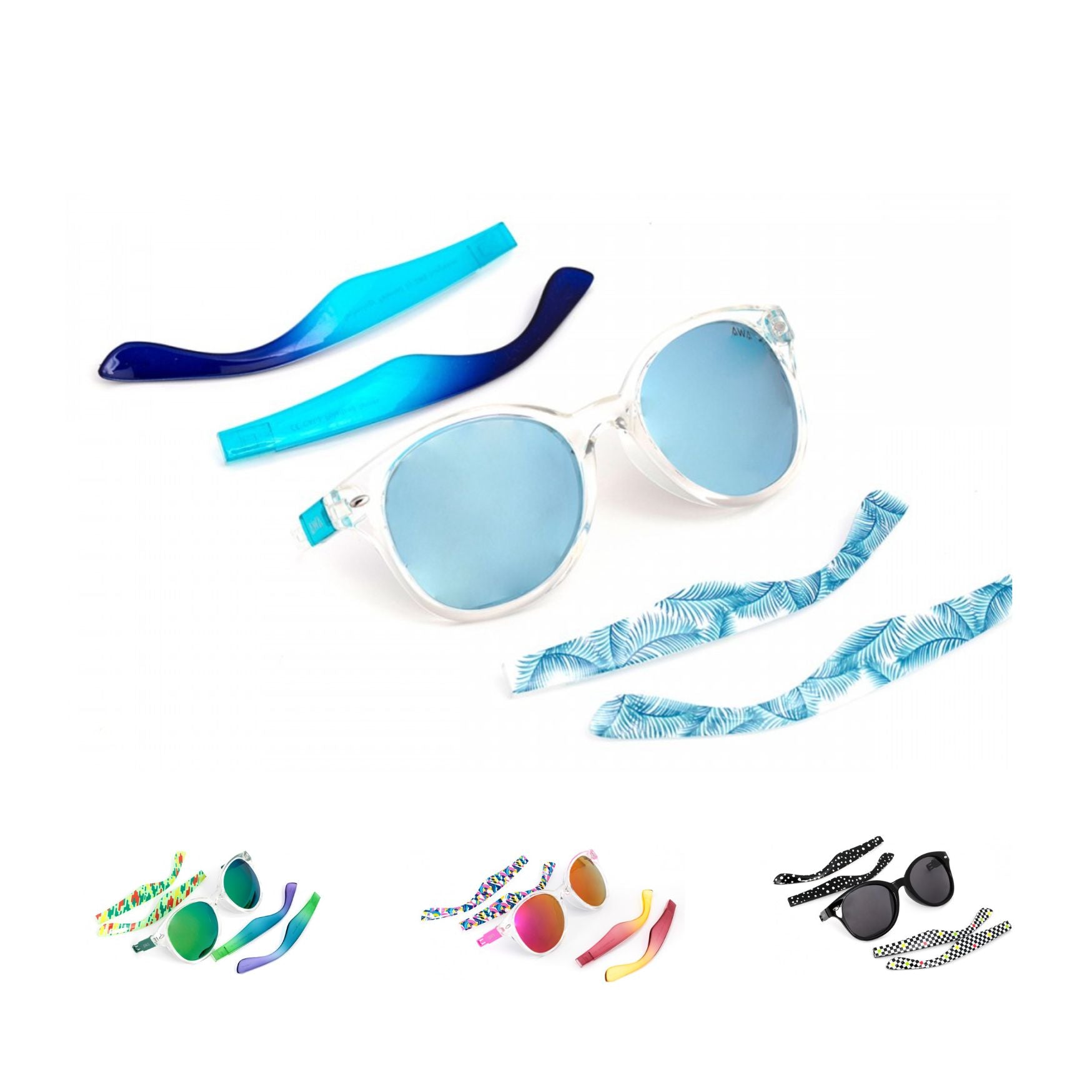 Por cada modelo tendrás 4 patillas de dos estampados diferentes, así podrás cambiar el estilo de tus gafas de sol recurrentemente sin coste adicional.