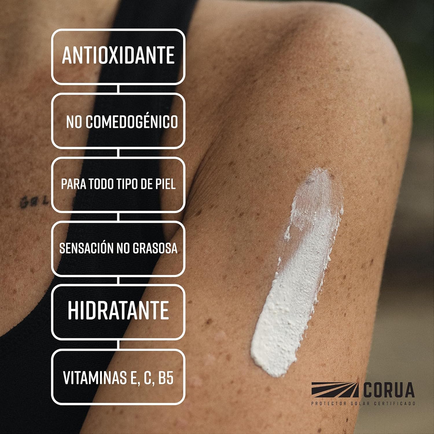 Corua es un producto dermatológico y enriquece tu piel con vitamina E que ayuda a reducir su envejecimiento prematuro. Te acompañará durante tus actividades de alto rendimiento por 80 minutos gracias a su alta resistencia al agua y al sudor. No irrita la piel ni los ojos. Es apto para uso en niños de mayores de 6 meses. Consultar a su médico para menores de 6 meses.
